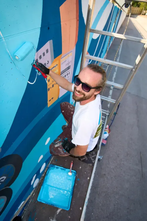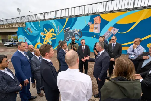 Group photo with the creators, Enikő Váczy and Balázs József,...